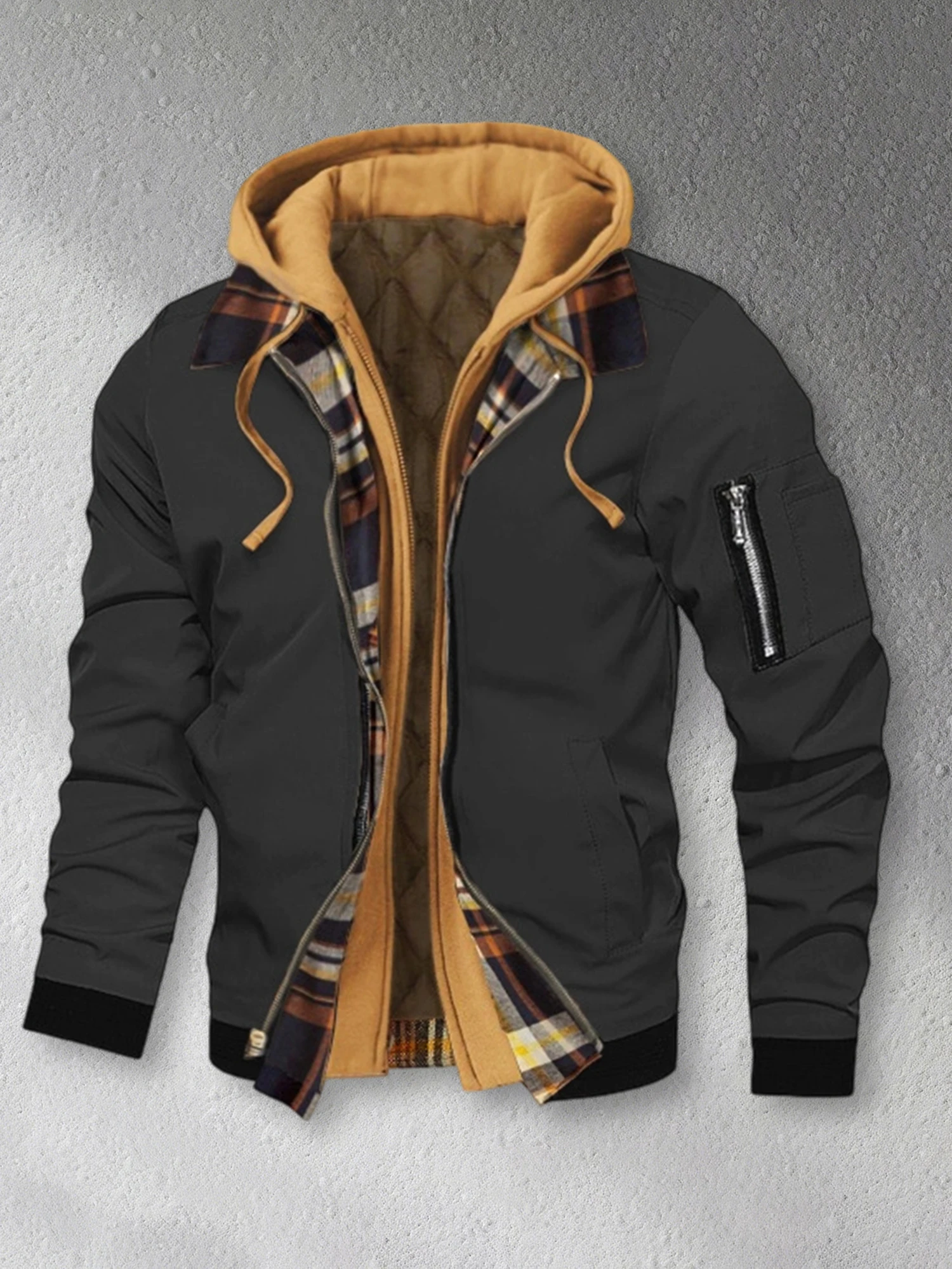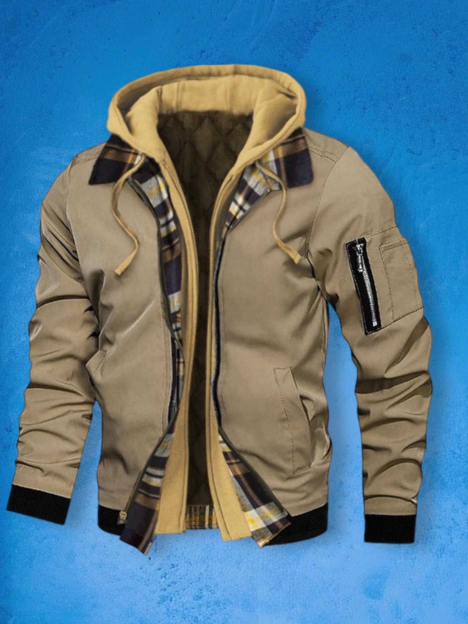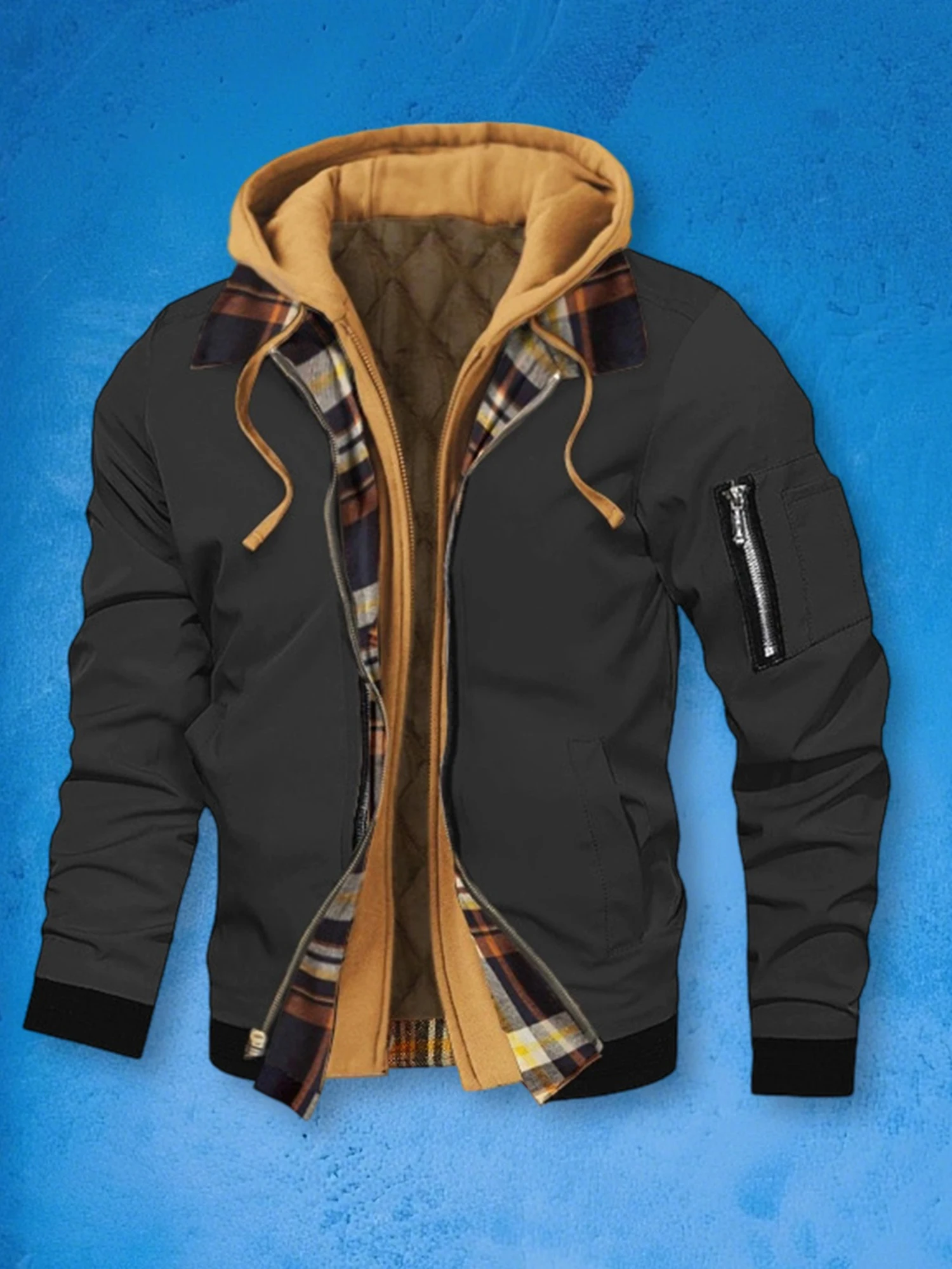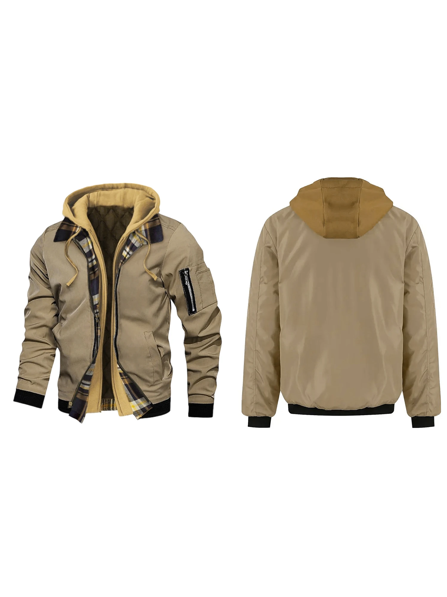 Men's Winter Hooded Jacket Casual Fake Two Piece Design Zip Up Long Sleeve Warm CoatsSize (cm)