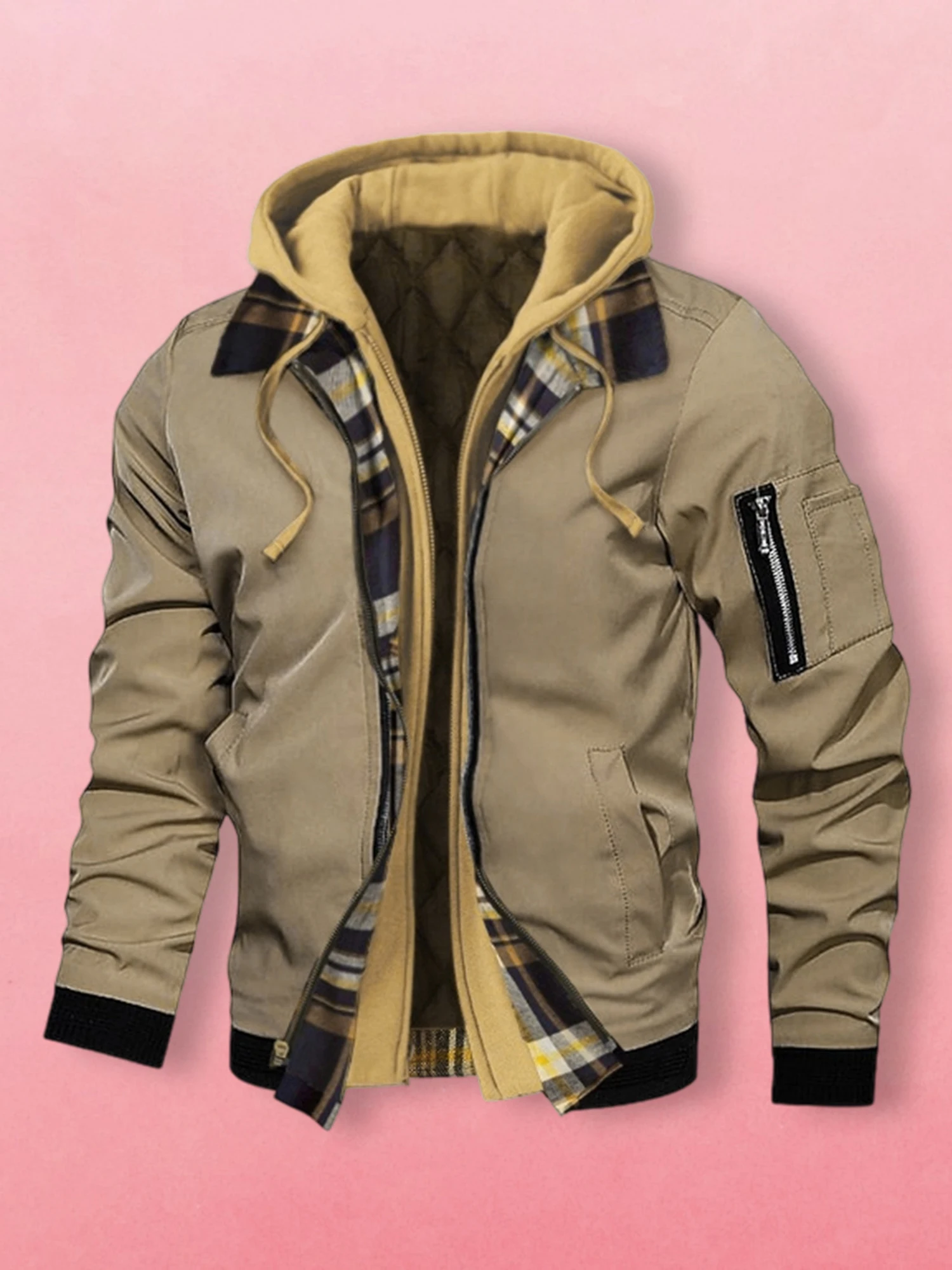 Men s Winter Hooded Jacket Casual Fake Two Piece Design Zip Up Long Sleeve Warm Coats with Faux Fur Lining and Pockets