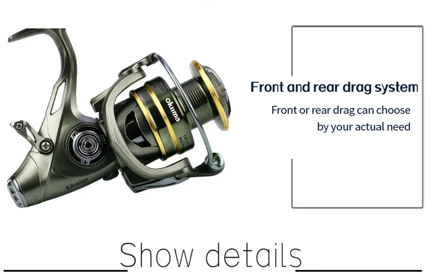 OKUMA Fishing Reel Spinning Wheel with Double Brake 18KG Line Capacity for Angling And Baitcasting